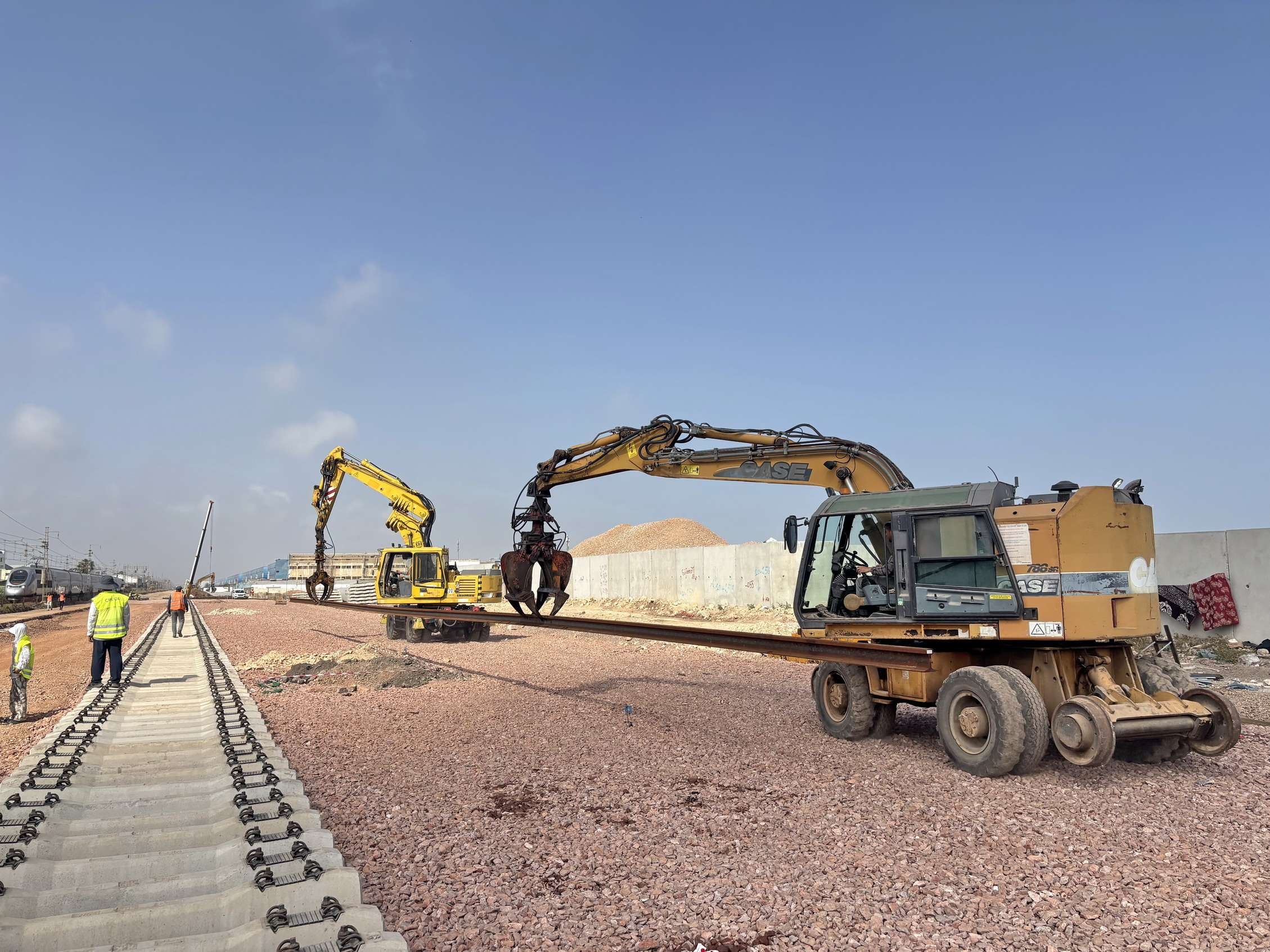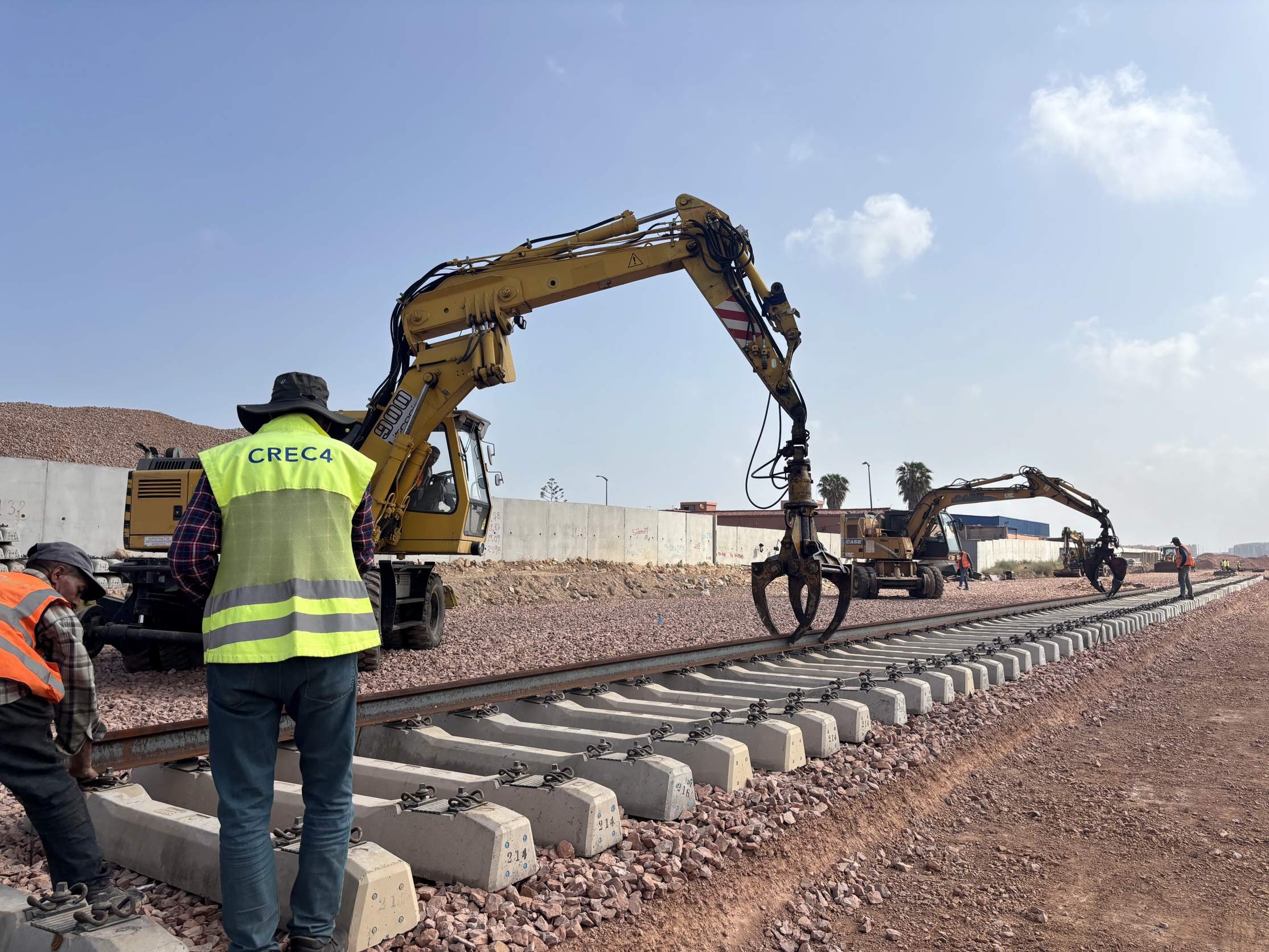 摩洛哥时间4月22日,w66给利老牌旗下中铁四局承建的摩洛哥铁路运力提升2标轨道改造项目正式启动铺轨作业。